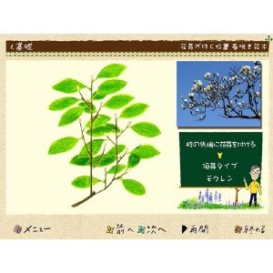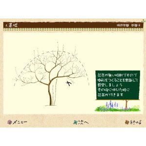 花木特有の性質や仕組みを生育のサイクルによってシミュレーション!特異な性質や特徴的な樹形をもつ花木を分かりやすく分類して剪定をマスター!画面上で枝を切りながら、翌年花芽が付くかどうかをシミュレーションし確認ができる!画期的な剪定学習ソフトです。